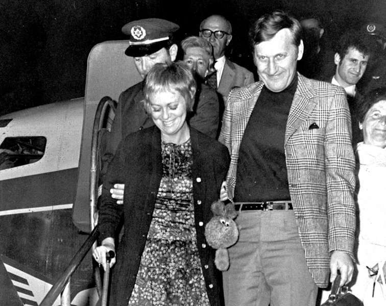 מרון עם בעלה יעקב רכטר, בחזרה לארץ לאחר הפיגוע במינכן // צילום: פריץ כהן, לע"מ