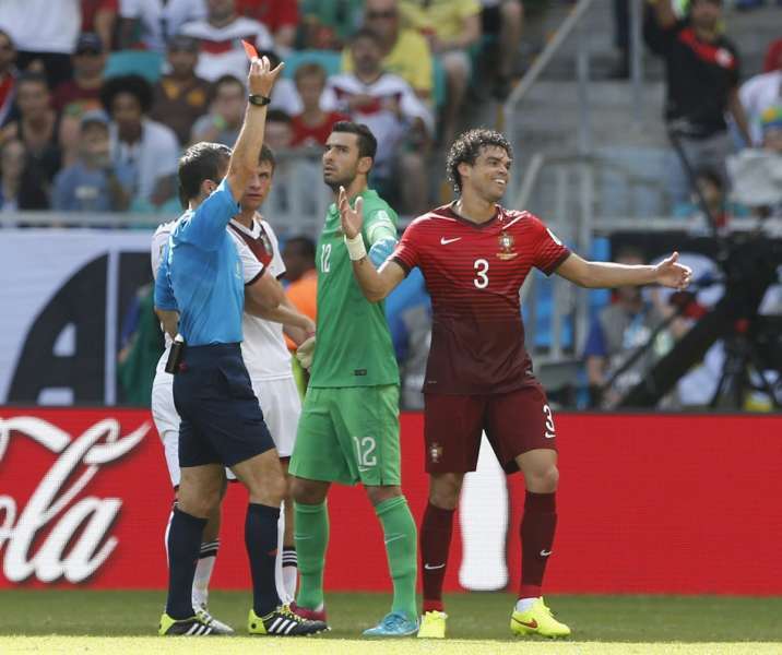 דקה 37: פורטוגל הולכת ומסתבכת. פפה הורחק בכרטיס אדום לאחר ששלח מרפק לפניו של תומאס מולר ולאחר מכן התעמת וקילל אותו.
