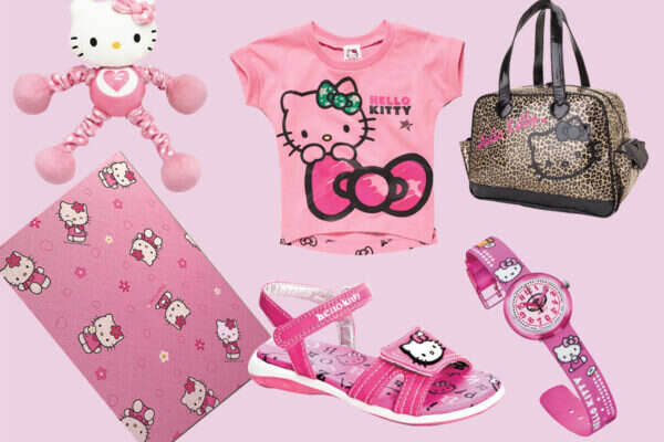 ביפן בלבד יש 100 חנויות המוקדשות לה ועוד 7,000 נקודות מכירה (חנות בתוך חנות). בטייוואן יש בית יולדות שקרוי על שמה וכל הפריטים בו מעוטרים בדמותה. לחברת התעופה היפנית (אווה איירליינס) יש מטוס ששמו "הלו קיטי" ודמותה מופיעה על גבי יותר מ־22 אלף מוצרים רשמיים, ובהם איפור, כלי מטבח, מוצרי טקסטיל וביגוד. בארץ אפשר כמובן לרכוש בפארמים וברשתות הילדים את תמרוקי החתולה. רשת ורדינון מציעה מצעים בדמותה, וברשת חנויות סווטש מגוון שעוני פליק פלאק באיורים משובבי לב של קיטי. אם חשקה נפשכם בנעלי החתולה, תמצאו שפע רב בדמותה בסניפי המותג גלי. שלל אקססוריז בדמותה מוצעים גם ב־H&O, וכמובן ברשת סניפי המותג סאנריו הפזורים ברחבי הארץ. בגלי החליטו השנה לכבוד חגיגות 40 שנה למותג הלו קיטי לייצר קולקציה מיוחדת לילדים, שכוללת כבר בעונת הקיץ סנדלים, סניקרס וכפכפים. "יש ביקוש למותג, ולראשונה חתמנו הסכם שממשיך גם לקולקציית החורף הקרובה, שתכלול כ־20 דגמים הכוללים מגפיים, נעלי ספורט, נעלי בית ונעלי ילדים", מסביר ישראל בכר, מנהל השיווק של רשת גלי.