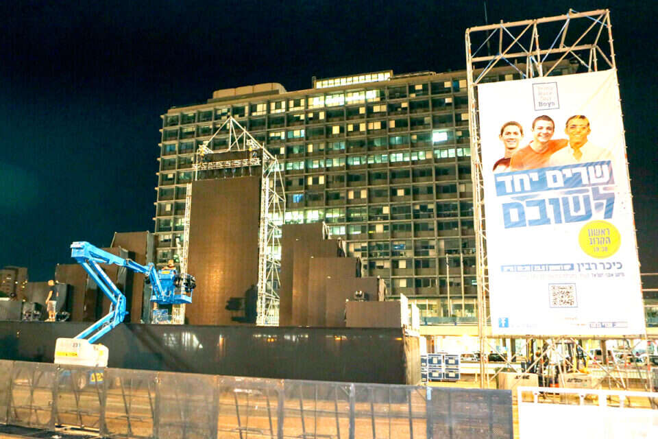 צילום: יהושע יוסף // ההכנות בכיכר רבין. "כולנו יחד זוכרים"