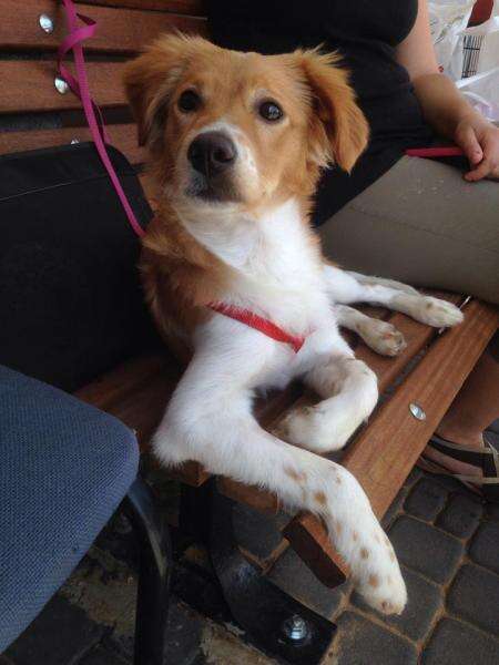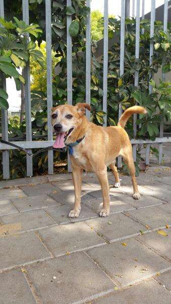 פיצו - כלב מעורב בינוני-קטן, ידידותי ומחונך בן 6.