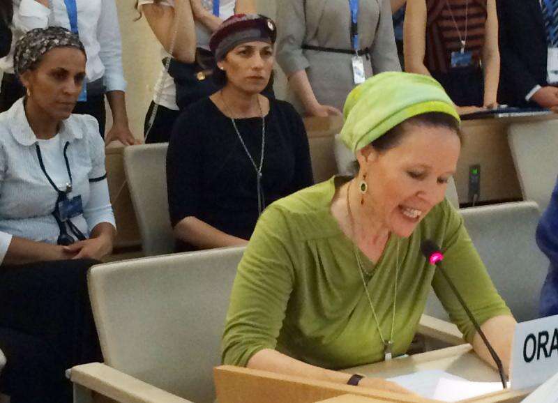 רחל פרנקל במהלך נאומה באו"ם // צילום: בועז ביסמוט