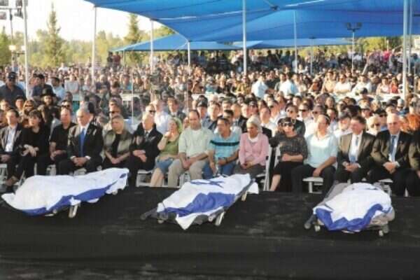 Tens of thousands of Israelis arrived Tuesday at the Modiin cemetery for the funeral of the three Israeli teenagers whose murdered bodies were found on Monday. After roads were closed due to the masses of mourners, Israelis walked for miles to attend the funeral service for Gil-ad Shaer, Eyal Yifrach and Naftali Frenkel. Prime Minister Benjamin Netanyahu and President Shimon Peres attended the funeral, among many others from the political arena. "The citizens of Israel learned to recognize their faces, and even if, to our great regret, we did not have the privilege of meeting them -- as we had hoped, as we had wished -- we saw the magic of their smiles, their gentle manner, the joy of their youth," he said. Netanyahu continued, saying to the families, "We learned a lesson from you that we shall not forget -- a lesson of faith, determination, unity and sensitivity, of Judaism, of humanity. An entire nation stood together and was reminded who we are, why we are here. Your light shone even brighter against the terrible darkness of those who want us dead." Peres also addressed the mourning families. "We are laying Naftali, Gil-ad and Eyal to a final rest. Three wonderful boys belonging to the Jewish people," Peres said. "For 18 days and nights, I, like you, was consumed with worry. ... I believe the murderers will be caught. ... Israel will take tough steps until terror is uprooted." Frenkel's mother, Rachel, who became a well-known figure during the ordeal as she sought to draw attention to the teens' plight, said, "Rest in peace my child. We will learn to sing without you. We will always hear your voice inside of us." Finance Minister Yair Lapid said at the memorial for Shaer, "Today, we are burying a child who could have been any one of ours and therefore he is one of ours -- all of us...If we want to punish our enemies, there is no greater punishment than to have them look at us and see that there is nothing that can come between us." Shaer's younger sister, Shirel, mourned the tragic loss of her brother. "I don't have a brother anymore," she said. At the memorial service for Yifrach in Elad, Defense Minister Moshe Ya'alon said, "Eyal, Gil-ad and Naftali were kidnapped and murdered simply because they were Jews. ... We will not rest and we will not be still until we get our hands on the murderers."