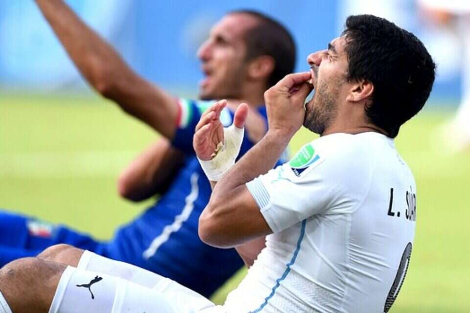 אחרי שניצח כמעט לבדו את אנגליה, נשך החלוץ האורווגואִי את כתפו של האיטלקי ג'ורג'יו קייליני מול עיני העולם כולו. "איבדתי שיווי משקל, נפלתי עליו ופגעתי בו עם הפנים שלי; ההתנגשות השאירה לי סימן על הלחי וגרמה לי לכאב חזק בשיניים", טען בפני ועדת המשמעת. הננשך עצמו הגיב: "סוארס הוא נחש שמתגנב ונושך. השופט ראה את סימן הנשיכה ולא עשה דבר. זו בושה וחרפה". העבר המפוקפק של סוארס - שתי נשיכות קודמות של שחקני יריב - בוודאי השפיע על ההחלטה של פיפ"א לזרוק את החלוץ מהמונדיאל בברזיל ולהרחיק אותו מכל פעילות בארבעת החודשים הקרובים. בינתיים הוא כבר הספיק להתנצל, קייליני סלח ואפילו טען שהעונש היה כבד מדי. אבל את סימני הנשיכה הזאת יהיה קשה למחוק מספרי ההיסטוריה של המונדיאלים.