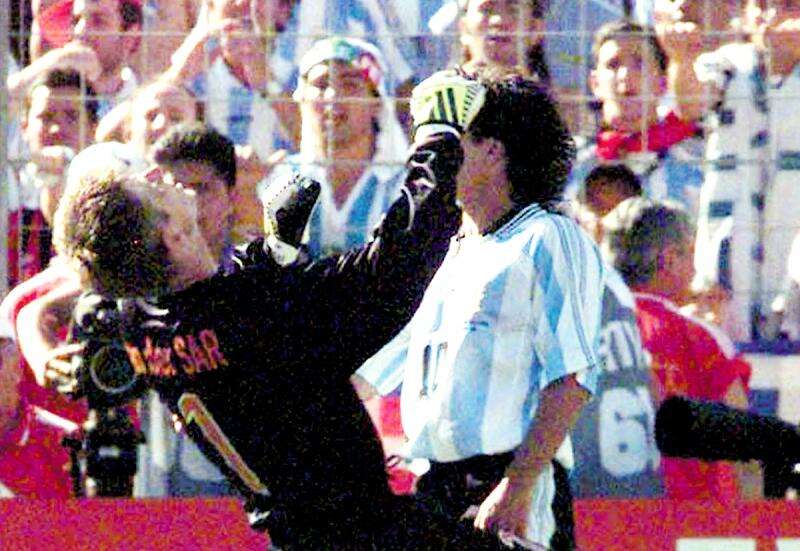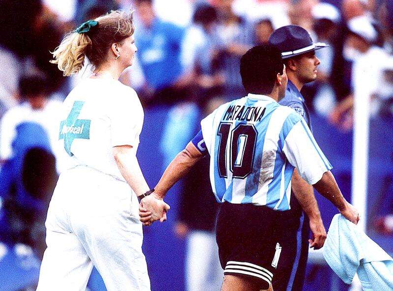 אחרי שכבר ריצה עונש הרחקה בגלל שימוש בחומרים אסורים, התייצב דייגו למונדיאל בארה"ב ב־1994 כדי להוכיח לכל העולם שהוא כבר לא מסומם ועדיין הכדורגלן הכי גדול בעולם. אבל אחרי שני משחקים ושער אחד נכשל מראדונה בבדיקת סמים, נזרק מהמונדיאל והושעה ל־15 חודשים. זה היה סופה של אגדה.