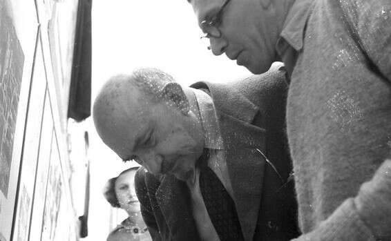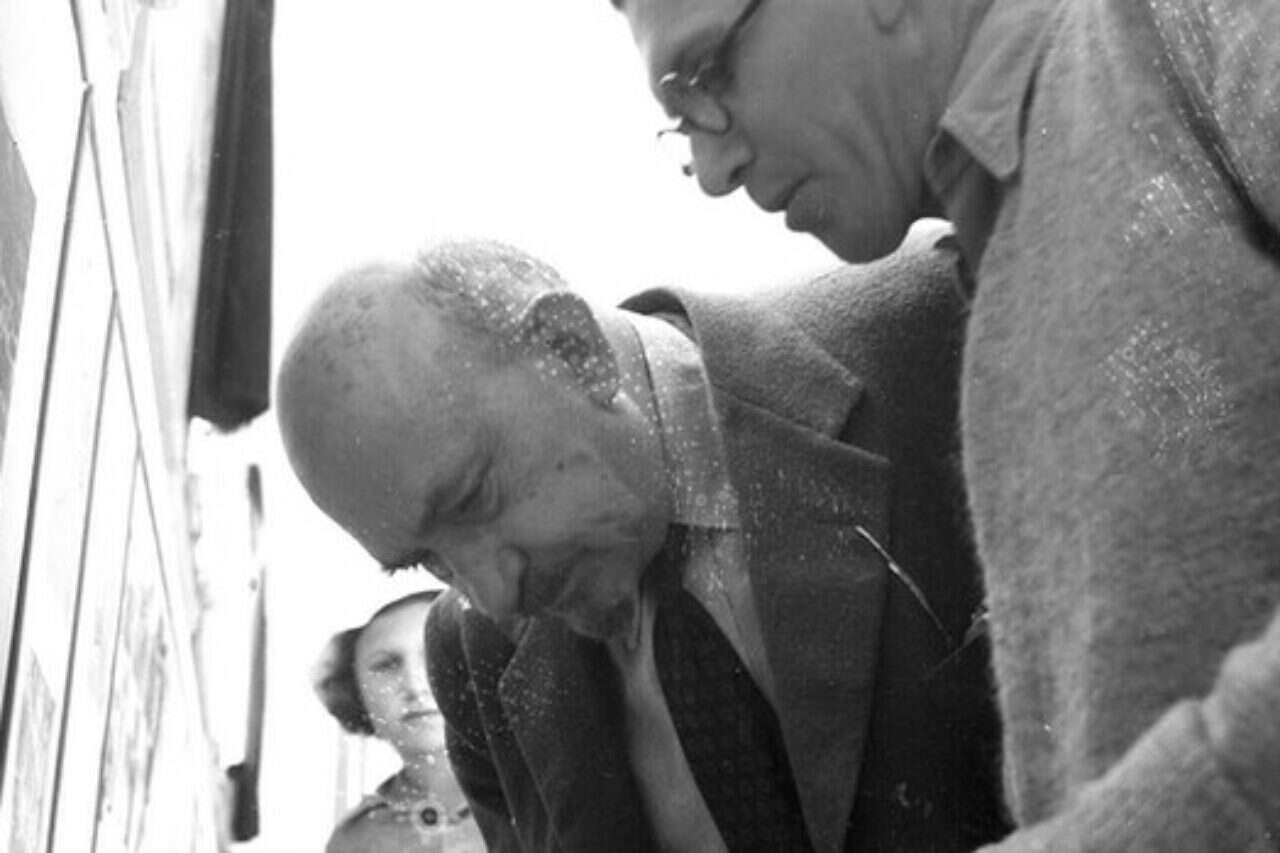 שמואל סבוראי מדריך את ויצמן במוצגי בית שטורמן: