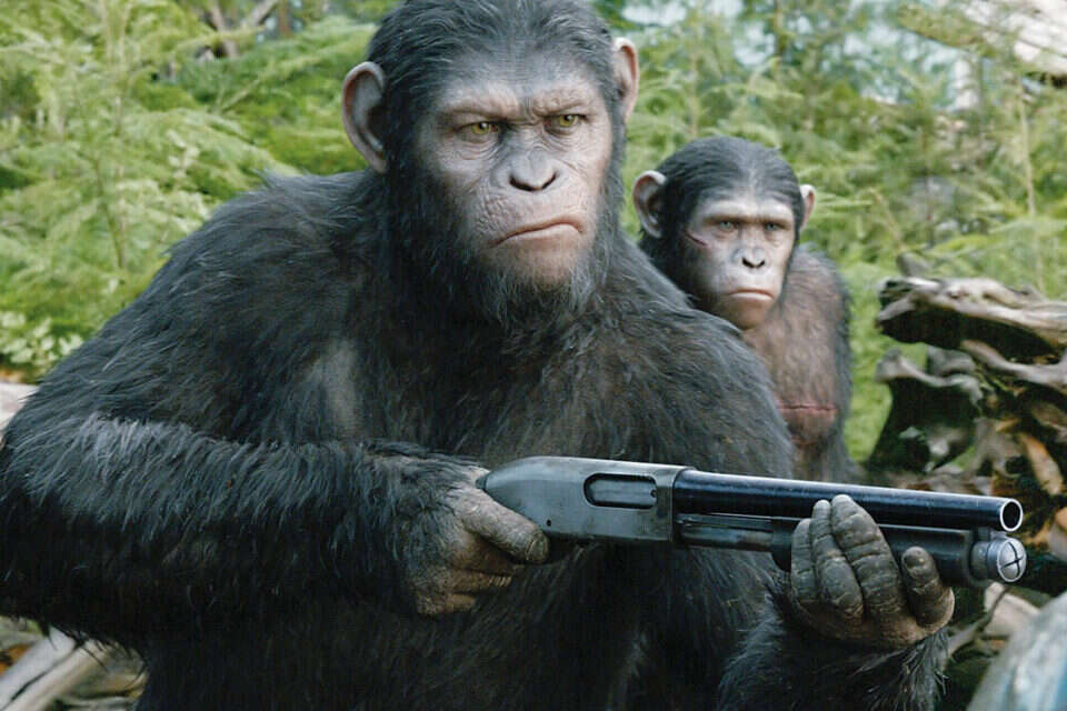 המאזן כעת נוטה לטובת אוכלוסיית הקופים. בראשם ניצב קוף השימפנזה סיזר, שכיכב גם בסרט הראשון, ושאותו מגלם באמצעות חיישני אנימציה ממוחשבת חדשנית אנדי סירקיס הבריטי - מי שגילם את דמותו של גולום בטרילוגיית "שר הטבעות".