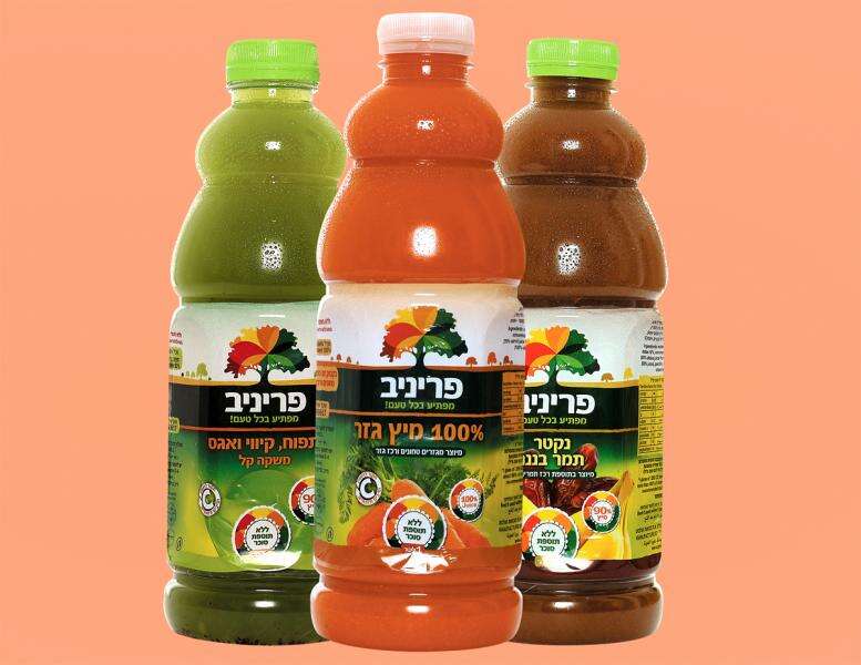 חברת פריניב השיקה 3 מיצים ללא סוכר בטעמים: בננה תמר, מיץ גזר, מיץ קיווי, אגס ותפוח. מיץ בננה תמר מכיל 90% מיץ, 3 יחידות בננה, 15 יחידות תמרים ורכז תמרים טבעי.