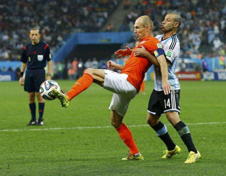 חאבייר מסצ'ראנו עוצר רת אריאן רובן בחצי הגמר // צילום: רויטרס