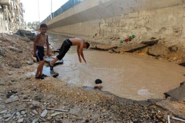 ילדים סורים בעיר חאלב מצאו שימוש למכתשים שנוצרו על ידי פצצות שהטילו מטוסי קרב של המשטר, בחודשי הקיץ החמים. המכתשים, שנותרו מלאים במי גשם, משמשים כבריכות לילדים שמחפשים דרך לברוח מחום השמש היוקדת. למרות הבוץ והלכלוך, לילדים אין הסתייגויות לגבי השימוש במכתשים, כאחת הדרכים היחידות בהן הם יכולים לעשות כיף, בין העימותים המתמשכים מסביב.