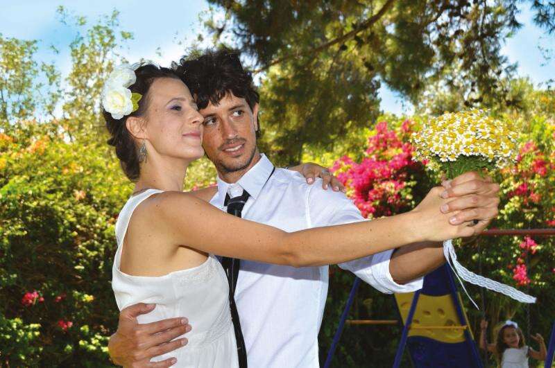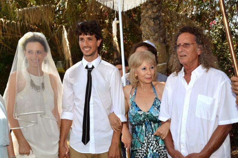 הזוג הצעיר בחופה עם הוריו של אילון. חתונה שמחה ושקטה מאזעקות