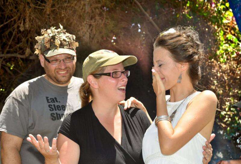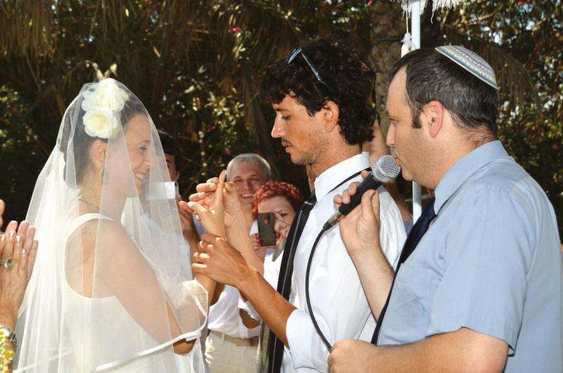 בטבעת זו. "זאת החופה הראשונה שאני מנהל, שבה גם החתן וגם אבא שלו באים במכנסיים קצרים", התבדח הרב גלעד קריב
