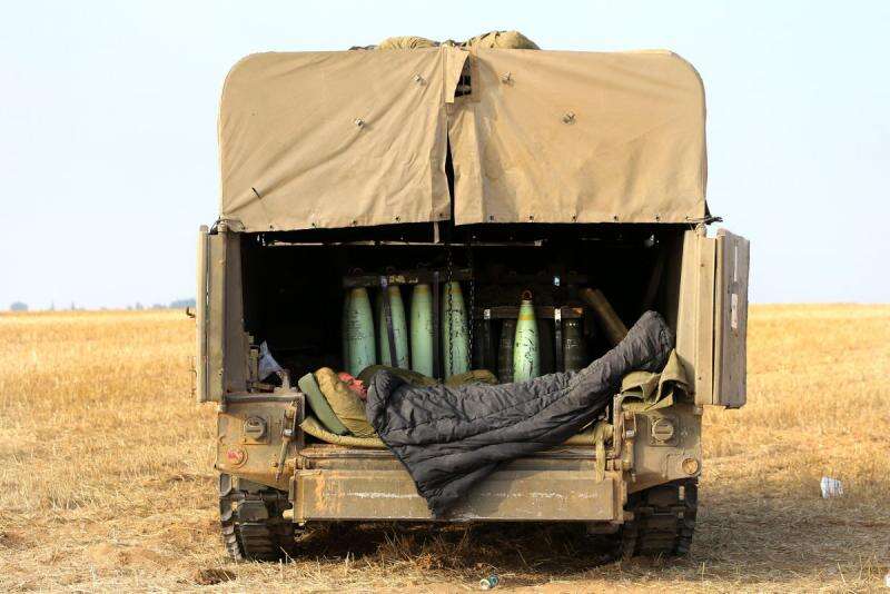 מנוחת הלוחם. חייל ישן במוביל תחמושת בעת ההמתנה לפעולה קרקעית, סמוך לגבול הרצועה