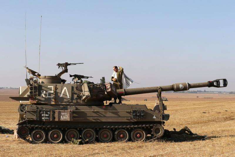 תפילת הדרך. חייל מתפלל שחרית על תותח בעוטף עזה, יום שני השבוע