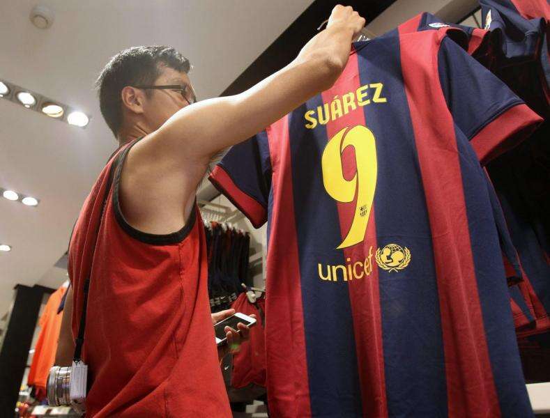 החולצות של סוארס כבר נחטפות // צילום: איי.אף.פי