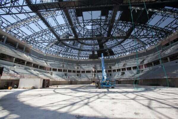 בתוך כך, ההכנות והבנייה בארנה נמשכות במלוא המרץ. בניית גג הבניין כמעט הושלמה, והצוותים כבר החלו בהרכבת הכיסאות, בצבע כחול, ביציעים העליונים. אין שינוי בלוח הזמנים להשלמת בניית האולם והוא צפוי להיות מוכן לעונת המשחקים הקרובה.
