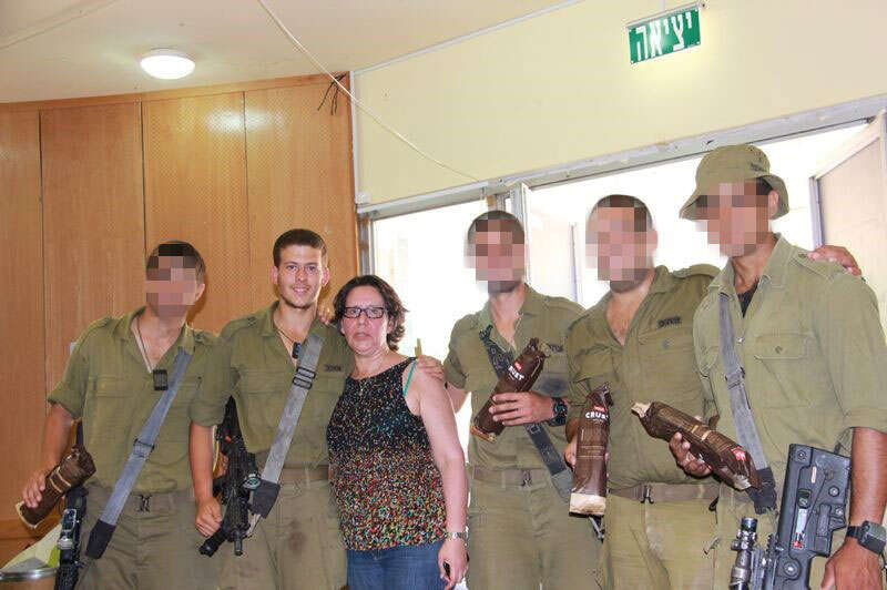 שגיא ואמו עם חבריו לגדוד, והתרומה שארגנו בני משפחתו // צילום: באדיבות המשפחה
