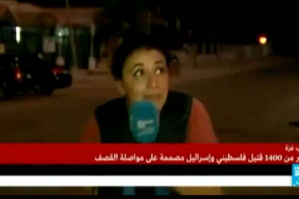 צפו: בזמן שכתבת france24 בערבית מדווחת בשידור חי על המצב הקשה בבית החולים שיפא נורה טיל מתוך המבנה לעבר ישראל