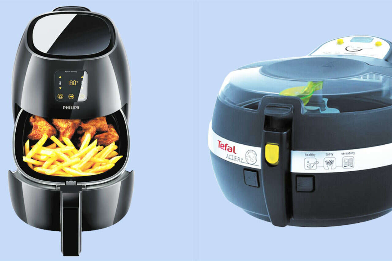 שני סירי טיגון ובישול בריאים, המבטיחים "לטגן" צ'יפס באוויר חם ועם כף שמן אחת בלבד: AirFry XL של פיליפס וה־Actifry של טפאל.