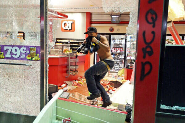צילום: אי.פי // גבר בוזז חנות לאחר ההפגנה