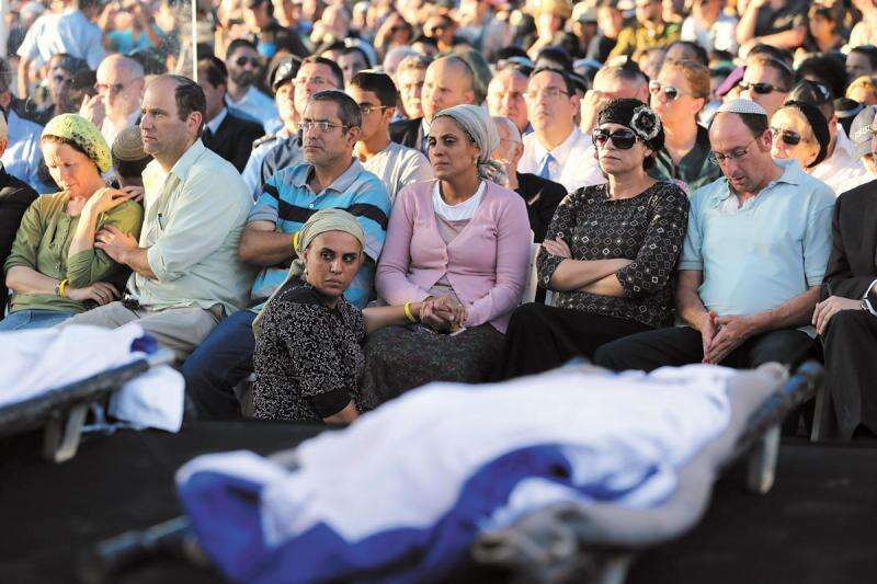 טקס ההלוויה המשותף. "אומרים לנו, 'תהיו חזקים, בבקשה תהיו חזקים'" \ צילום: זיו קורן