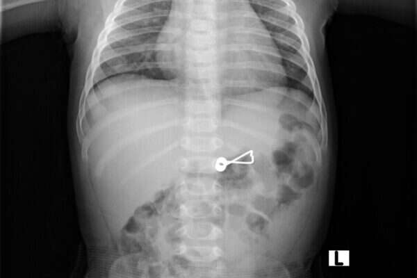 תינוק בן חצי שנה, מאחד מיישובי עמק יזרעאל, הובהל לבית החולים העמק בעפולה, לאחר שבלע קפיץ של אטב לתליית כביסה. אמו סיפרה לצוות הרפואי בחדר המיון כי בעת שהיתה עסוקה בתליית כביסה נשבר אחד האטבים והפעוט, שהיה בסמוך אליה, התנפל על המציאה והכניסה מיד לפיו. תחילה הראה התינוק סימנים של מצוקה נשימתית והוריו חששו שהאטב חוסם את דרכי הנשימה שלו. אולם בבדיקות הדמייה שנערכו לתינוק עם הגיעו למחלקה לרפואה דחופה, התברר כי למרבה המזל, התינוק הצליח לבלוע את הקפיץ והוא ממוקם בקיבה.