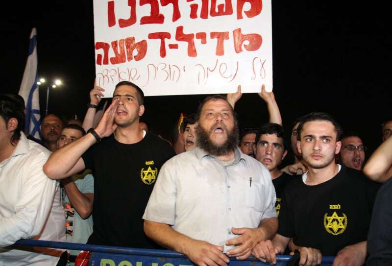 "אין בושה". הפגנת פעילי להב"ה מול אולם החתונות // צילום: גדעון מרקוביץ'