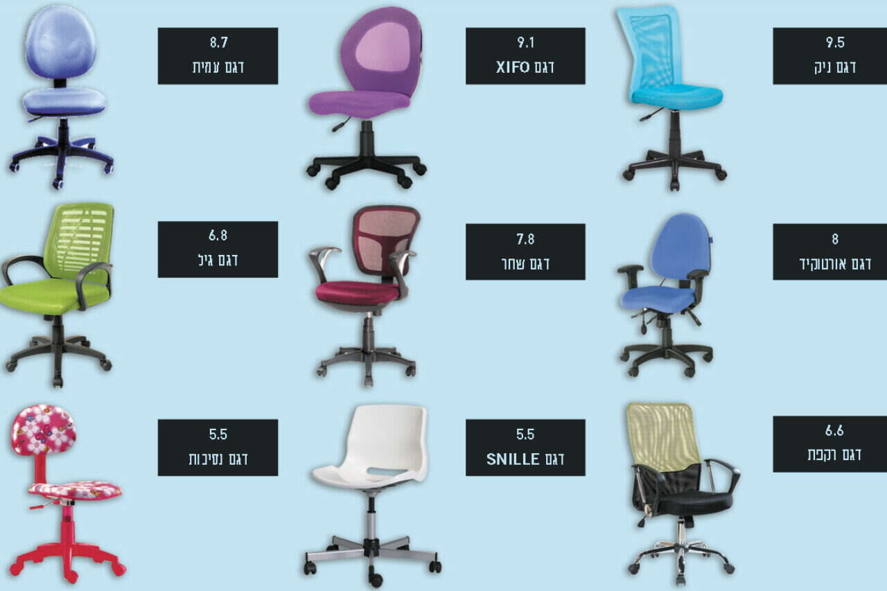 החלטנו לבדוק תשעה כיסאות של חברות שונות בטווחי מחירים שונים. הזמנו אל המערכת ילדים בני 8-12 והורים, ונתנו להם לבחון את הנוחות, את היציבות ואת האפשרויות השונות שכל כיסא מאפשר, וגם איך הוא נראה. כל אחד מהם נתן את התרשמותו ואת הציון לכיסא מ־1 עד 10 בלי לדעת, כמובן, בכיסא של איזו חברה מדובר.
