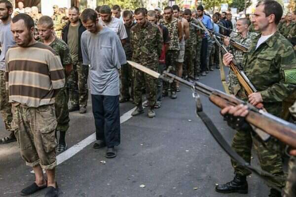 ביום שבו אוקראינה חוגגת את עצמאותה בתהלוכות ונאומים, בדלנים פרו רוסים במזרח המדינה ביימו מפגן נגדי: מצעד שלועג לצבא המדינה, וחוגג את המוות ושבי החיילים האוקראינים. בראש התהלוכה עמדה אישה צעירה בלונדינית, שנושאת רובה סער, ואחריה כמה עשרות חיילים אוקראינים שנלקחו בשבי כשהם מטונפים, פצועים ומוזנחים. ראשיהם מגולחים, הם לובשים מדי הסוואה מצחינים, ומבטם מושפל כשהם צועדים ברחובות, כך תיאר הניו יורק טיימס.