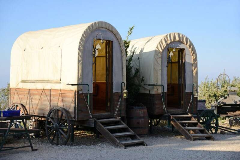 מחוץ למסעדה עומדות כמה כרכרות עץ שנבנו במיוחד, בתוך כל כרכרה שולחן וספסלים, והן מאובזרות במזגן ובמוסיקה - מעין תאים פרטיים לארוחה רומנטית או לאירוע משפחתי מול הנוף החלומי.