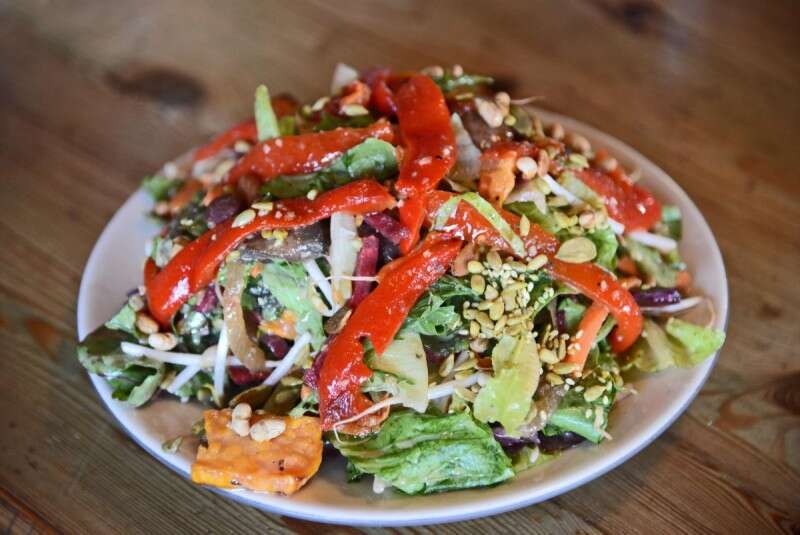 אנחנו פותחים בסלט החווה הנפלא והצבעוני - סלט עלים ונבטים עם בטטה ופלפלים קלויים ועם תערובת של גרעינים, אגוזים ושקדים. אחריו מוגש לנו נזיד בוקרים: מרק שעועית עם בשר וירקות שורש. קצת קשה לי עם הרעיון של נזיד חם בקיץ, אבל במסעדה אומרים לי שזוהי מנת דגל שאנשים מגיעים במיוחד בשבילה אז אני מתפתה, ואכן מדובר במנת פתיחה נהדרת. בשלב הזה כמעט שאין לי מקום למנה עיקרית, אבל לא יעלה על הדעת שלא אטעם מהבשר, אז אני מזמינה סטייק טי־בון 400 גרם - רך ועסיסי להדהים, שילוב של סינטה ופילה על העצם, ולצידו רוטבי צ'ימיצ'ורי. זאת מנה משביעה ונהדרת שמוגשת עם אורז בר עם ירקות ועשבי תיבול.