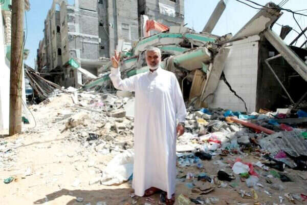 למרות הדיווחים על אשפוזו: איסמעיל הנייה הצטלם בשישי על רקע הריסות ביתו בצפון עזה