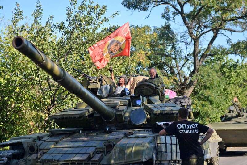 לוחמים פרו־רוסים בדרום־מזרח דונייצק, אתמול // צילום: אי.אף.פי