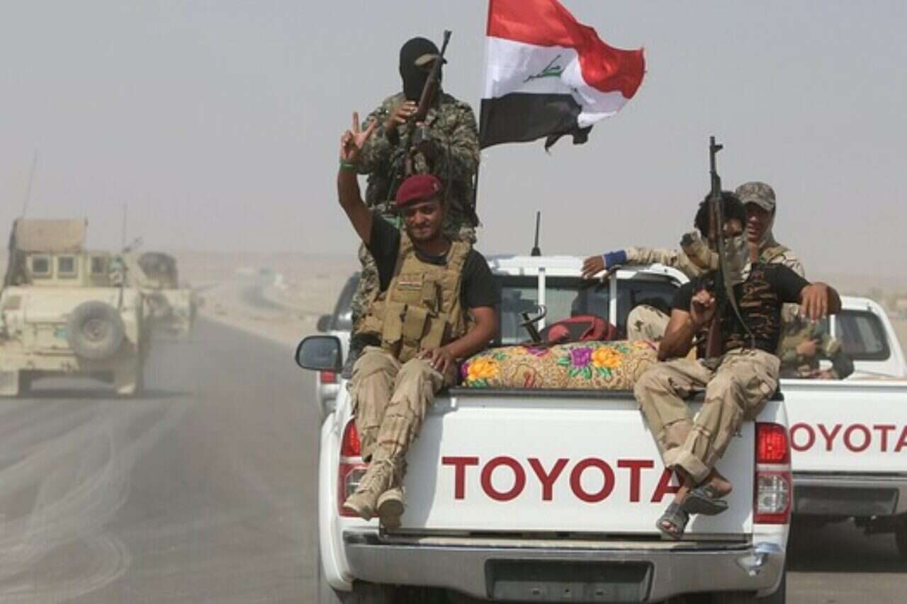 מתנדבים עיראקים מחוץ לעיר אמרלי הנצורה צילום: אי. אף פי