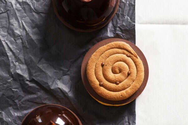 כיפת שוקולד לבן, טארט שוקולד וקרם שקדים // צילום: איתיאל ציון