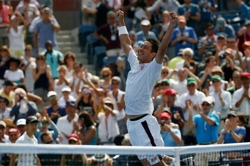 מייקל ג'ורדן, ברוס וויליס ועוד כ־20 אלף איש באיצטדיון ארתור אש היו עדים לאחת הסנסציות הגדולות של השנה, כשקיי נישיקורי היפני (11 בעולם, בן 24) הפך לגבר האסיאתי הראשון שמעפיל לגמר גרנד סלאם, כשניצח בקלות מפתיעה את המדורג ראשון בעולם והפייבוריט הברור לזכייה בטורניר נובאק ג'וקוביץ' 4:6, 6:1, 6:7, 3:6.