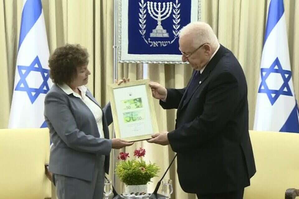 נשיא המדינה רובי ריבלין קיבל היום את שטר 50 השקלים החדש הראשון מידי נגידת בנק ישראל, קרנית פלוג. השטר החדש נושא את דיוקנו של המשורר שאול טשרניחובסקי, והוא ייכנס למחזור ערב ראש השנה.