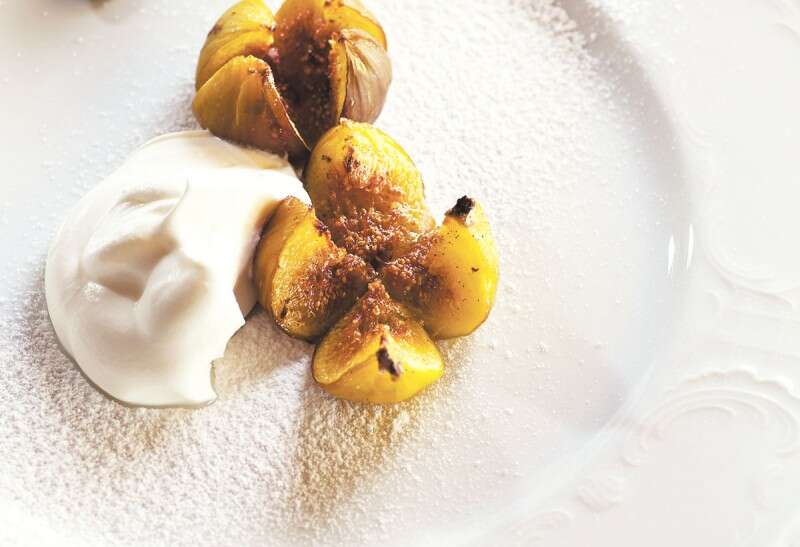מחממים תנור למצב גריל. חורצים איקס בחלק העליון של כל תאנה ולוחצים את התאנה מצידיה על מנת שייפער החתך. מפזרים על כל תאנה כפית או יותר מסוכר הווניל. מכניסים את התבנית לגריל עליון ואופים משך עשרים דקות או עד שהסוכר מזהיב. מגישים לצד העוגה (מהמתכון הבא) או בליווי גלידת וניל וקצפת.