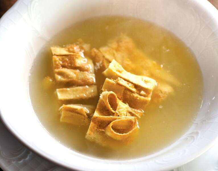 קוגל שמשמש תוספת אחרת ונהדרת למרק צלול. מרק עוף, כמו בבית של הסבתא, אבל יעבוד היטב גם במרק צלול מבקר או ירקות. "אצלנו", אומר סמולר, "הכינו את הקוגל בתבנית מרובעת והזוכים הגדולים, או הזריזים, זכו בפינות הקוגל הפריכות. במשפחות עם מסורת של מריבות על האוכל בחג - רצוי להשתמש בתבנית עגולה".