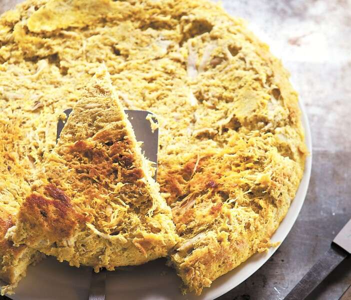 פירוש השם של פשטידת העוף הזו הוא עוף וילדיו. "תיאור מזעזע", אומר אסי, "אך טעים להפליא". זוהי מנה שהיא נגזרת של מרק ירקות ובדרך כלל אוכלים אותה כשהיא קרה. הולכת טוב בכריכים או בליווי סלטים מרוקאיים על השולחן. אנחנו טעמנו אותה כשהיא חמה. היה נפלא.
