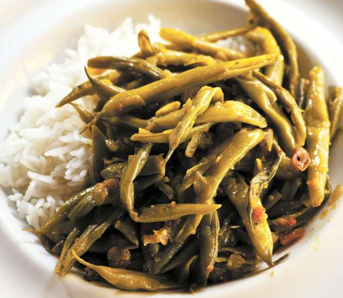 קוטמים את הקצוות של השעועית וחותכים לשניים. מטגנים את הבצל בשמן בסיר רחב ולאחר שהזהיב קלות מוסיפים את העגבניות. מוסיפים את השעועית החתוכה (לא להיבהל מהכמות, השעועית מאוד מאוד מצטמצמת עם הבישול), תבלינים ומים. מביאים לרתיחה ומבשלים ברתיחה למשך כעשר דקות. מנמיכים את האש ומבשלים בסיר סגור 45-60 דקות. סוד המתכון: בישול ארוך, בסבלנות, על אש נמוכה. מומלץ להגיש בתוספת אורז לבן.