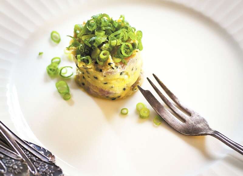 מנה שמשחקת עם השפעה אסיאתית, והשילוב בין החרדל לטעם האבוקדו הוא הנגיעה המייחדת של שי.