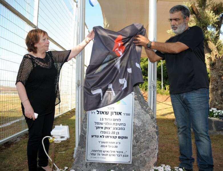 בין התמונות המונחות על המיטה של אורון גם תמונה מטקס ההתייחדות שערכה חטיבת גולני עם משפחות החללים באתר ההנצחה בצומת גולני, לפני חודש. מצבת הזיכרון, שעליה כבר חקוק שמו של אורון, היא עבור המשפחה הדבר הקרוב ביותר לקבר. לפני הטקס, כשזהבה ראתה לראשונה את שם בנה על המצבה, היא מתחה את גופה הקטן כדי לטייל עם אצבעותיה על אותיות שמו. הרצל הביט בה ופרץ בבכי.