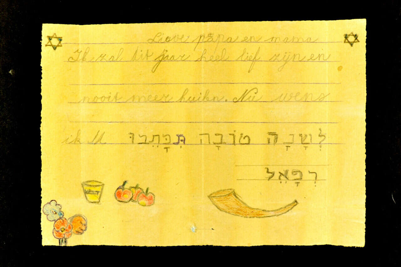 רפאל, בן הזקונים בן ה־7, כתב בהולנדית: "אני אהיה השנה ילד טוב מאוד, וכבר לא אבכה אף פעם". רפאל הוסיף בעברית כי "לשנה טובה תיכתבו". פאני (ציפורה) הבכורה כתבה בכרטיס הברכה שהכינה: "גם בלי תפוח ודבש תהיה השנה הזאת טובה ומתוקה לנו". היא סיימה בתפילה: "שיהיה במהרה בימינו שלום ושנהיה מהר בבית עם כל המשפחה, לשנה טובה תיכתבו".