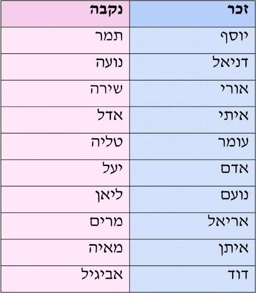 בראש רשימת השמות הנפוצים לנולדים בשנה הזאת לבנים נמצא השם יוסף. אחריו דניאל, אורי, איתי, עומר, אדם, נועם, אריאל, איתן ודוד. בראש רשימת השמות הנפוצים נמצא השם היפה תמר, ואחריו נועה (שהייתה במקום הראשון אשתקד), שירה, אדל, טליה, יעל, ליאן, מרים, מאימה ואביגיל.
