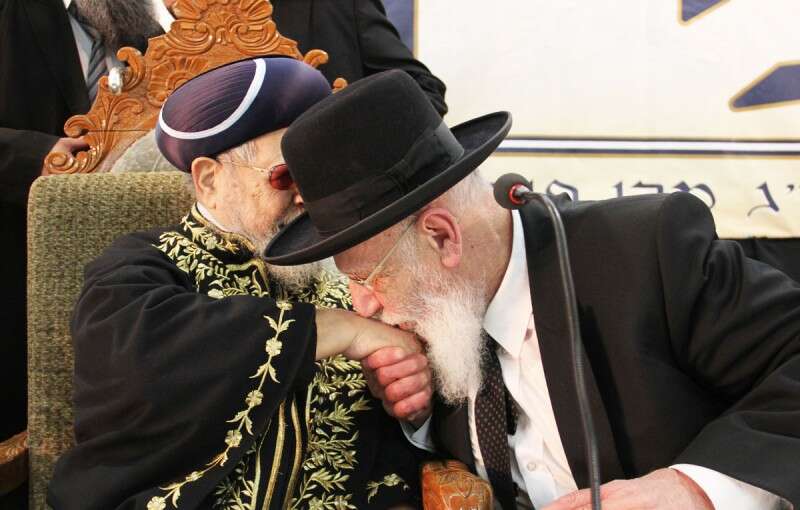 עם הרב עובדיה. לאנשי ש"ס חשוב מאוד להדגיש את הקירבה ביניהם // צילום: יעקב כהן