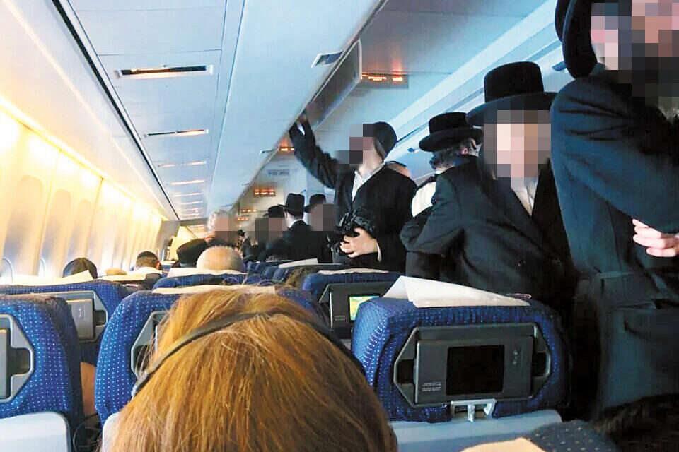 נוסעים חילונים שהיו על המטוס סיפרו כי החרדים ניסו לבקש מהם להתחלף במקומות כדי שלא ייאלצו לשבת ליד נשים, וחלקם אף הציעו כסף תמורת ההחלפה. הנוסעים הוסיפו כי למרות שצוות המטוס מסר להם שהם אינם חייבים להסכים, הקברניט הודיע בכריזה שהמטוס לא ימריא כל עוד הנוסעים אינם ישובים. הטייס אף התחנן בפני הגברים החרדים שיישבו כדי שיוכל להמריא, אבל ברגע שכבו נורות חגורות הבטיחות, קמו החרדים ממקומם ונעמדו שוב במעבר. שאר הנוסעים תיארו את הטיסה כסיוט מתמשך וכחוסר התחשבות בהם, כאשר החרדים עומדים במעברים, מתפללים, ויוצרים קושי בהגעה לתאי השירותים.