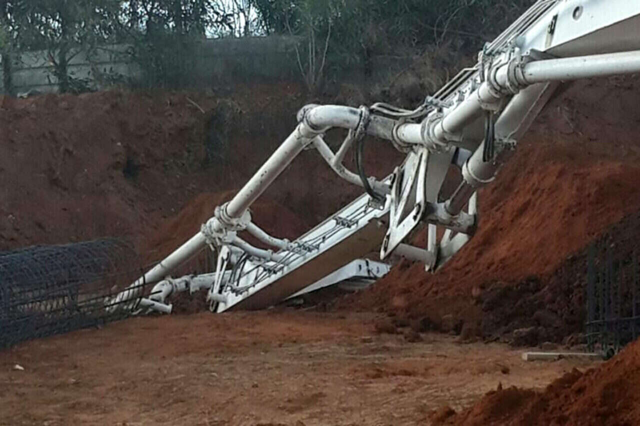 זרוע של משאבת בטון קרסה - פועל נמחץ למוות