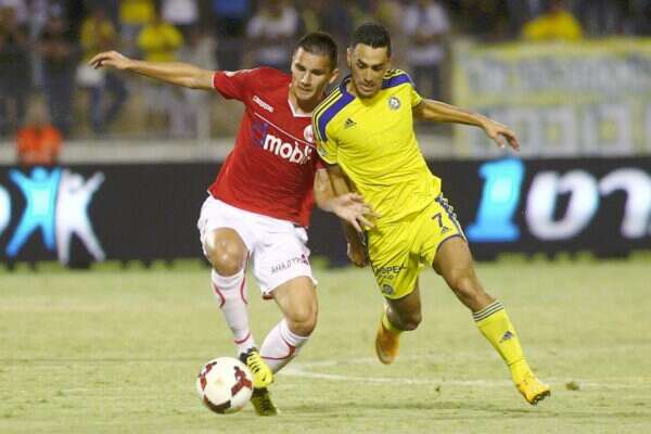 דקה 45: התקפה מושלמת של הצהובים הסתיימה בפצצה של ניקולה מיטרוביץ' לקורה של אג'ידה.