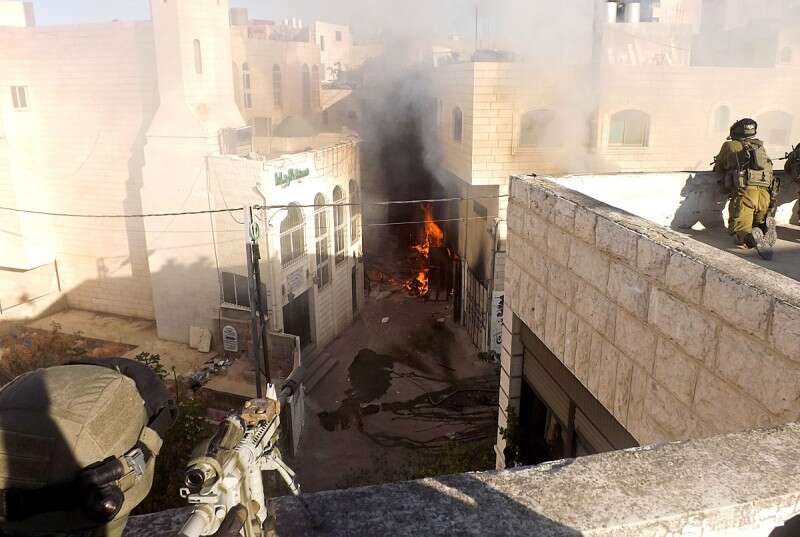 לוחמי הימ"מ מכתרים את הבית בחברון. המחבלים התחבאו בנגרייה שבקומה התחתונה // צילום: מג"ב